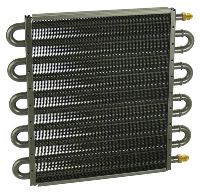 This Tube & Fin cooler features 1/2" copper tubing expanded into aluminum cooling fins and embossed turbulators. It is built with -6AN inlets and can be used as a transmission cooler, power steering or fuel cooler with equal efficiency. No mounting hardware included.