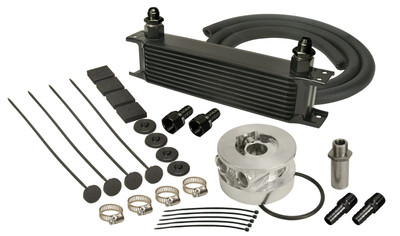 Our top of the line 10 row cooler is tailored in this kit to GM's popular V8's, this universal aluminum stacked plate engine oil cooler kit can not only reduce oil temperatures to help extend the life of lower end components and oil life, it also helps reduce coolant temperatures. This kit includes 180°F thermostatic sandwich adapter, hose and everything you need to fit most 1963-2007 GM V-8 applications.
