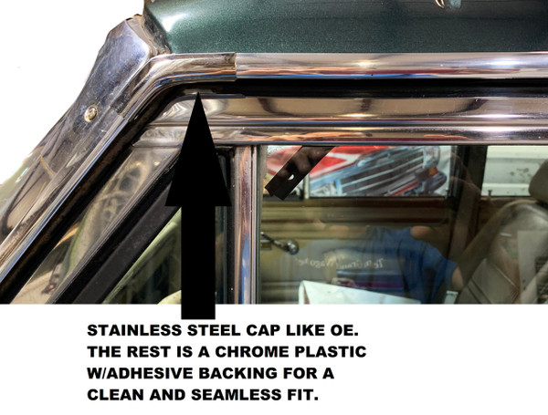 This kit includes U.V.-treated chrome plastic that is flexible and will not crack or tarnish like the original. The U.V. protection allows this trim to last many years without discoloration or tarnish.