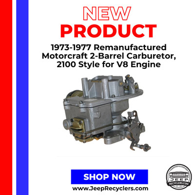 Replace your stock carburetor in your 1973-1977 Full Size Jeep Cherokee, Wagoneer, or J-Series truck with this UREMCO direct fit Remanufactured Motorcraft 2100-Style Carburetor, designed to deliver reliable performance and smooth engine operation.