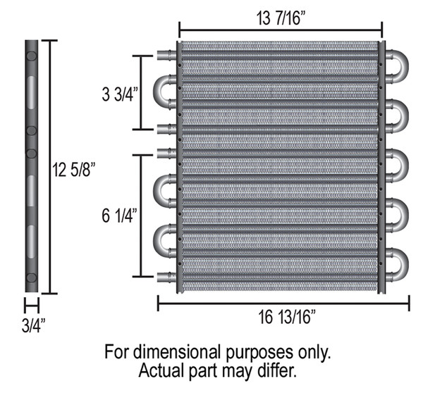 Featuring a free-flowing 4 & 6 pass cooler in one compact package and fabricated of 1/2" copper tubing and aluminum cooling fins, this Made-in-the-USA Dual-circuit cooler includes 2 each 11/32" and 2 each 1/2" barb inlets. It provides heat transfer capabilities for two independent systems such as engine and transmission or transmission and power steering that competitive units just can't match at anywhere near the price.