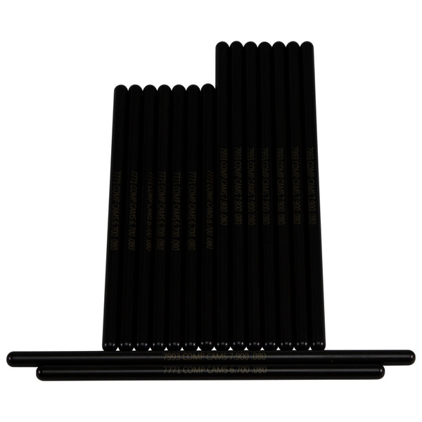 COMP Cams HEMI pushrod sets are a continuation of the Hi-Tech Pushrod line. These pushrods sets are engineered to provide optimal preload for specific late-model HEMI applications when using performance camshafts. Like all COMP Cams Hi-Tech Pushrods, these are a one-piece construction from .080” wall chromemoly tubing and are cryo-treated for extended durability. In addition, they feature precision formed and reinforced ball type ends, and the whole pushrod is black oxide finished and laser etched. COMP Cams Hi-Tech Pushrod Sets are available for the 2003-08 5.7L, 2005-10 6.1L and 2009-Current 5.7L/6.4L HEMI applications.