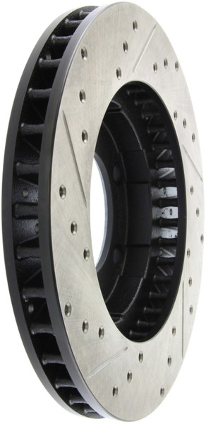 StopTech Drilled and Slotted Sport Rotors are 1-piece direct replacement brake discs for factory brake systems and stock calipers that look great behind your Full Size Jeep wheels and offer significantly improved braking performance. The unique cross-drilling and slotting aids with heat and brake dust dispersal, prevents glazing of the pads, adds bite and improves wet and dry braking performance.